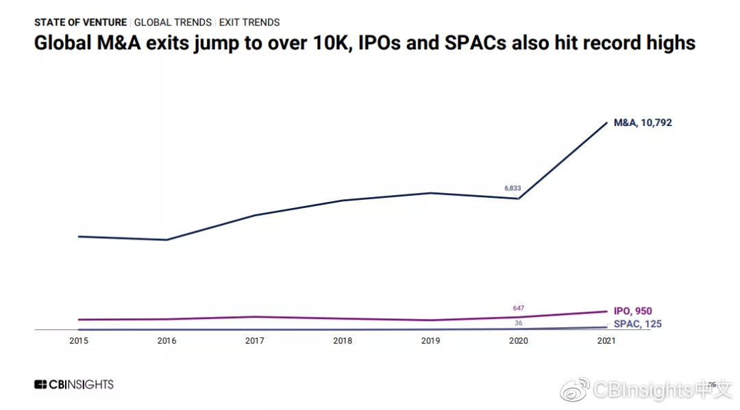 圖丨2015 年至 2021 年全球退出事件變化(來源:CB Insights)