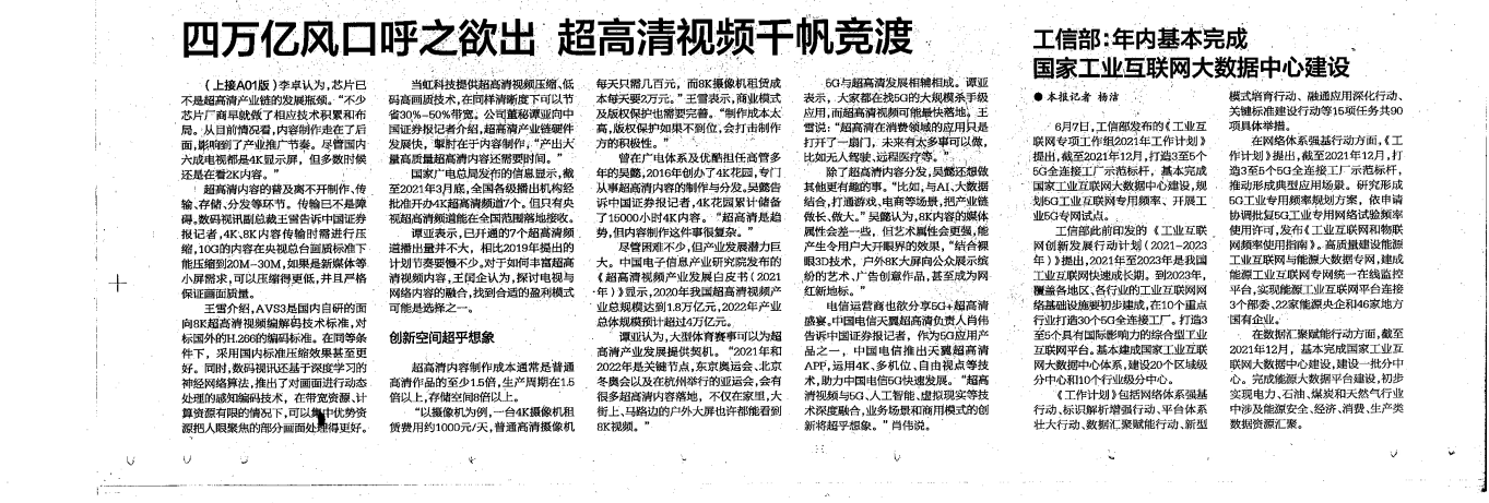 《中國證券報(bào)》:四萬億風(fēng)口呼之欲出 超高清視頻千帆競渡