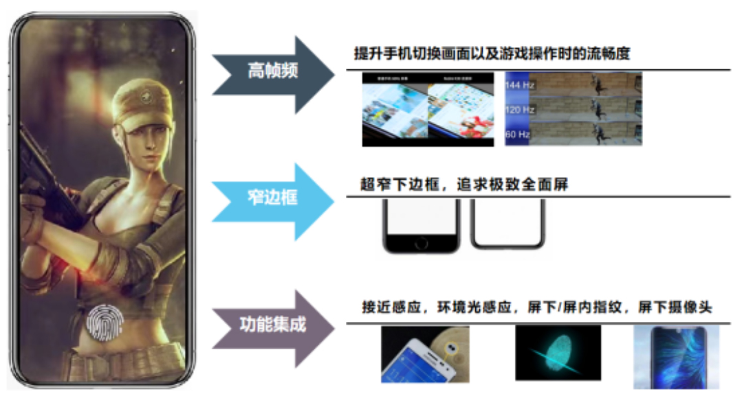 手機TDDI顯示屏技術(shù)發(fā)展趨勢高幀頻/窄邊框/功能集成度高。