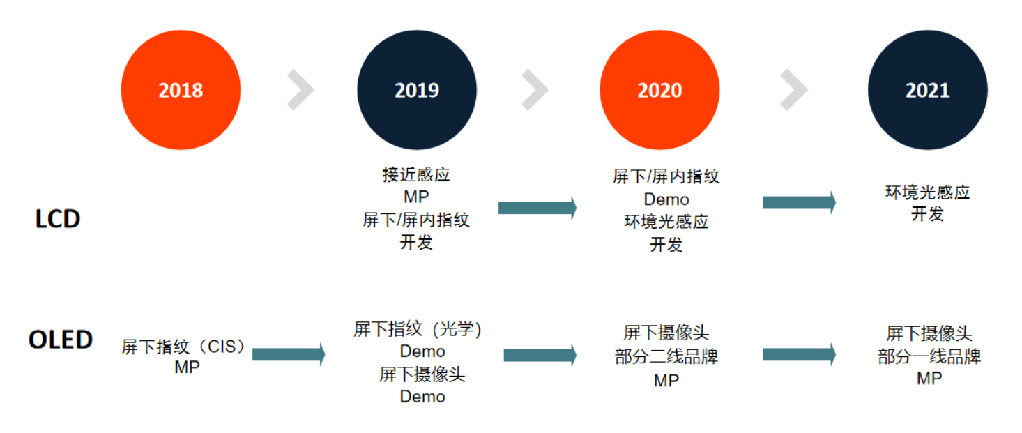 手機顯示屏針對功能集成的發(fā)展歷程: