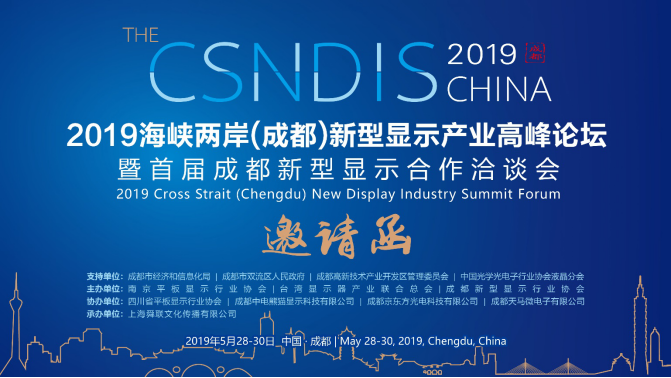 “2019海峽兩岸(成都)新型顯示產(chǎn)業(yè)高峰論壇暨首屆成都新型顯示合作洽談會”于2019年5月28日-30日在成都舉行,會議緊跟新型顯示產(chǎn)業(yè)發(fā)展趨勢,以“LCD、AMOLED、Micro-LED,機遇與挑戰(zhàn)”為主題,從科技與產(chǎn)業(yè)融合角度展開探討,關注顯示技術的發(fā)展,共同聚焦新型顯示產(chǎn)業(yè)鏈的整合和完善。