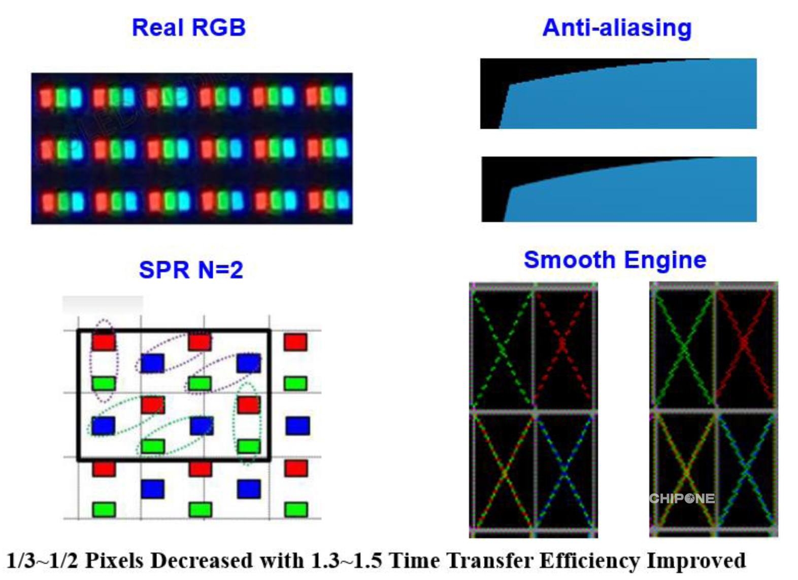 為了追求別致而形成的異性屏幕,IC的算法可以處理包括Round,Notch , Hole等在內(nèi)的各種奇特的面板外形。并使得邊緣不會(huì)產(chǎn)生色彩偏差和鋸齒紋的出現(xiàn)。