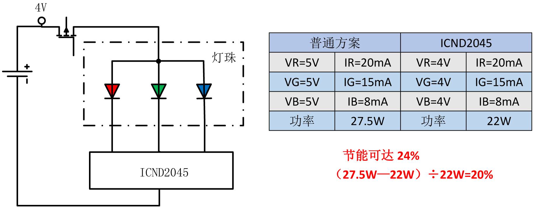 ICND2045節(jié)能比例:(32W-25.2W)÷32W=21.25%