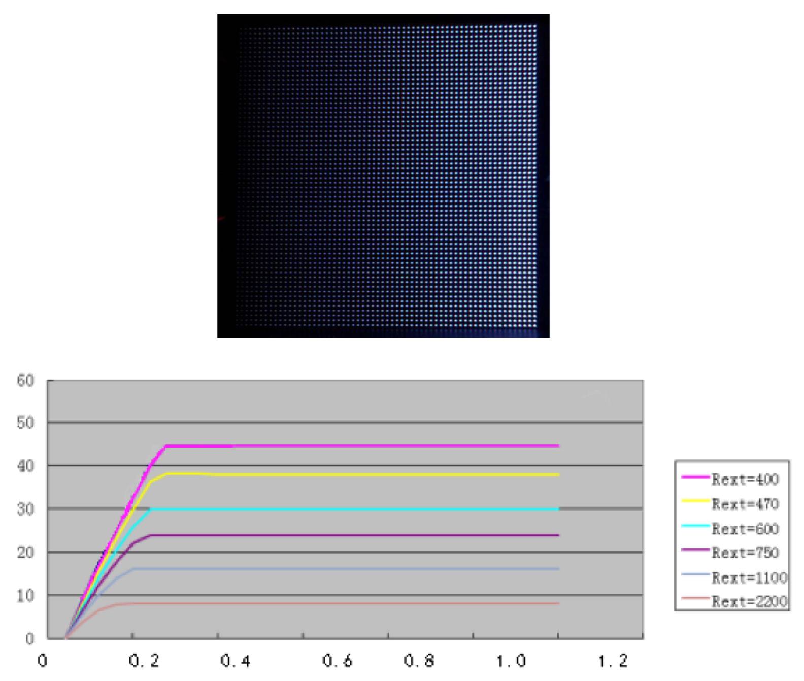 小結(jié):節(jié)能模組在電壓降低的同時,模組電流基本無變化,顏色無變化,亮度基本無變化,說明ICND2045 在4V供電時仍然可以保持恒流輸出。