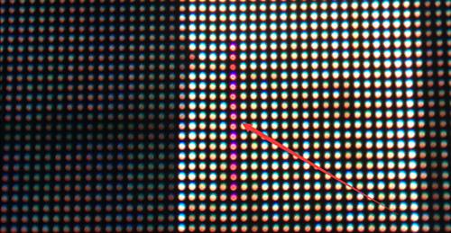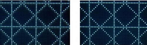 上鬼影是系統(tǒng)在不同的時間,分別驅(qū)動掃描行線,在關(guān)斷上一行線并驅(qū)動下一行時,上一行電路中殘留的電量無處釋放,只通過LED發(fā)光的形式釋放產(chǎn)生的暗亮的現(xiàn)象。而毛毛蟲現(xiàn)象則是掃描屏中的LED燈質(zhì)量有漏電或有短路的情況下,燈管被擊穿,使得該燈管所在列的其它燈始終處于高亮顯示狀態(tài)。普通增加電阻的方法只能讓兩種現(xiàn)象此消彼長,無法徹底解決,更因為點間距越小的屏體就擁有單位面積上更多的燈管數(shù)量,成倍放大了對LED顯示屏畫面質(zhì)量的困擾。