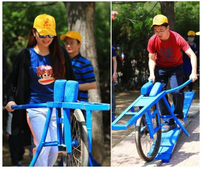 ? ? ?DU DU DU……隨著教練的哨聲,拓展訓(xùn)練正式開始,大象隊與熊貓隊的比拼展開了。一首《中國人》拉開了拓展的序幕,整齊劃一的動作,讓隊友們迅速進入狀態(tài)。